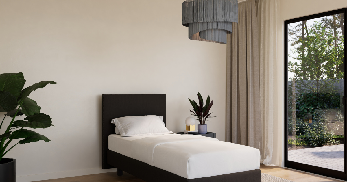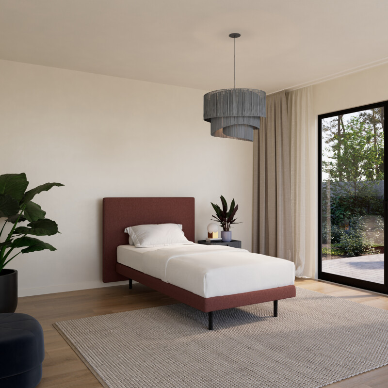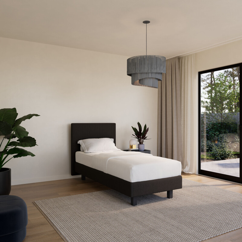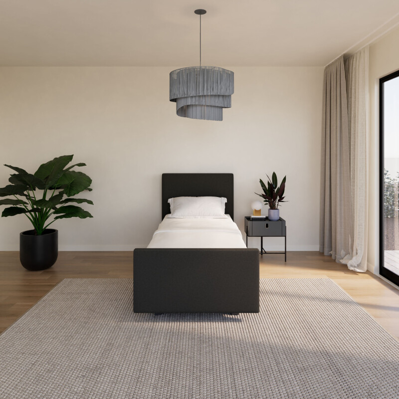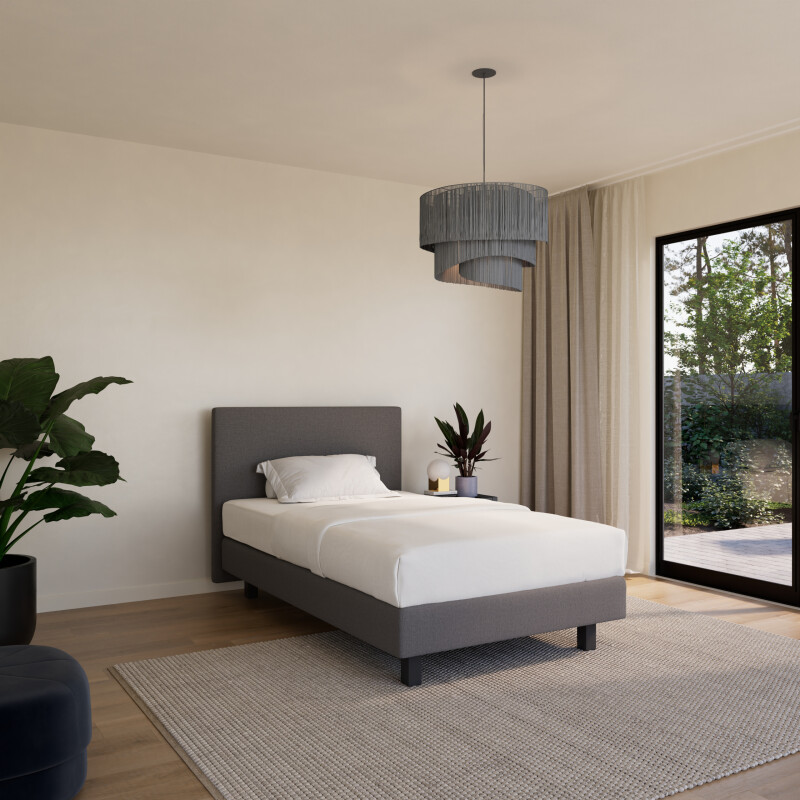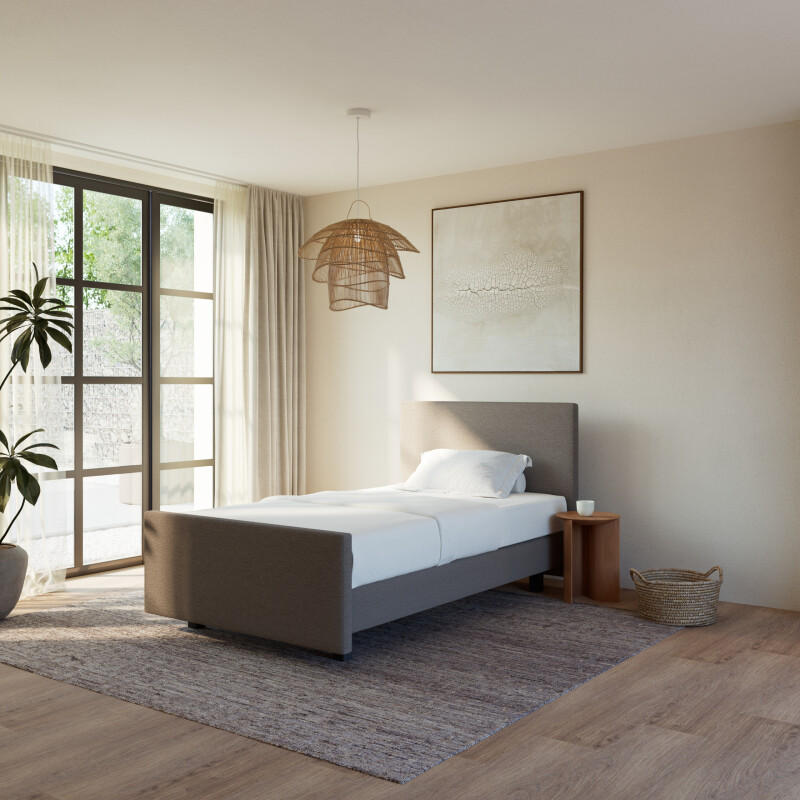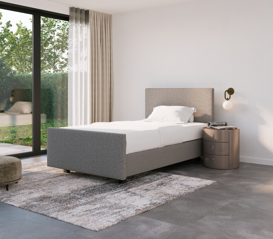 Ook het uiterlijk speelt een rol. De Boxspring Forma eenpersoons 90×200 vlak is volledig naar wens samen te stellen en kan worden uitgevoerd met een strak en compact hoofdbord: