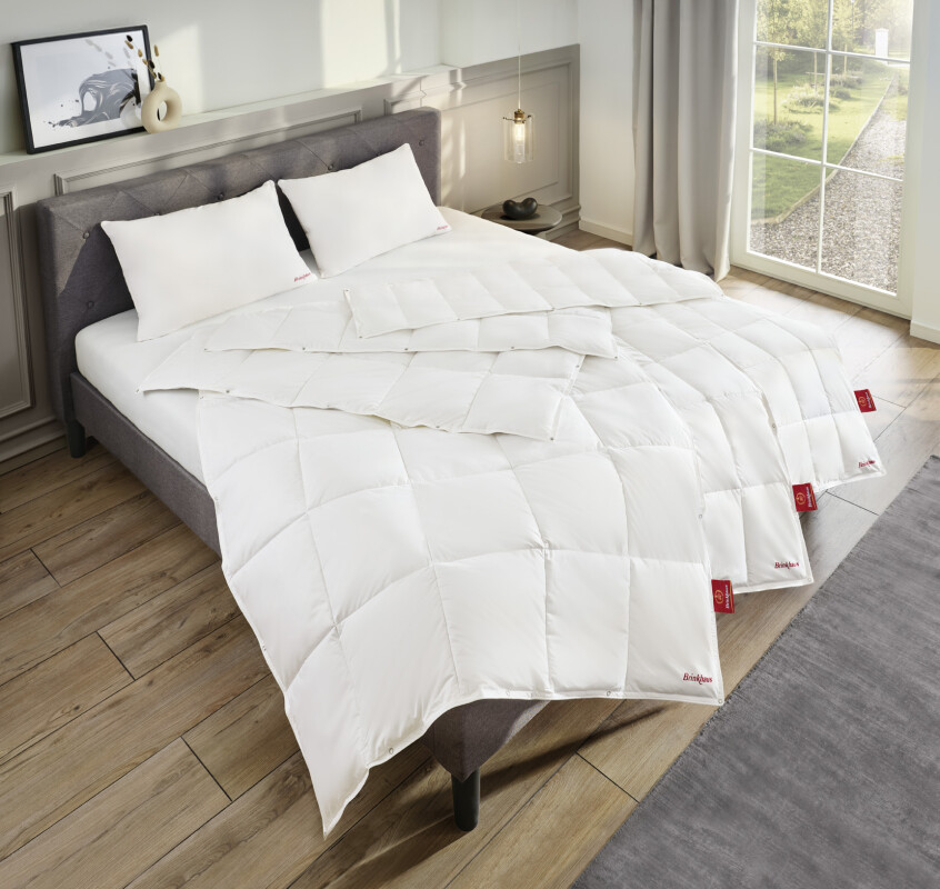 Het CELESTE dekbed is ontwikkeld met een speciale Air-Fill vezel die het lichte, luchtige gevoel van dons nabootst — zonder gebruik van dons. Hierdoor ontstaat een comfortabel en goed ventilerend dekbed dat warmte vasthoudt en tegelijkertijd lucht laat circuleren. Dit zorgt voor een droog, stabiel en aangenaam slaapklimaat gedurende de nacht.
