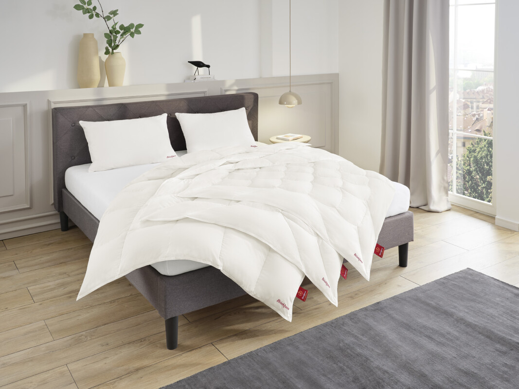 Het ESSENTIAL PURE dekbed combineert natuurlijke warmte met ventilatie en flexibiliteit. Hoogwaardig eendendons houdt warmte vast en laat lucht circuleren, zodat het lichaam droog en comfortabel blijft. Dankzij het praktische knoopsgatsysteem stel je eenvoudig jouw ideale warmtecombinatie samen voor elk seizoen en elke persoonlijke voorkeur.