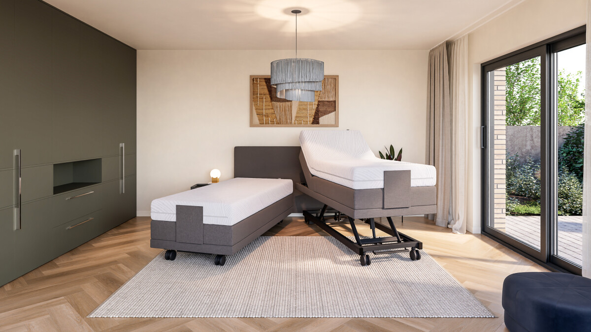De Boxspring Forma elektrisch hoog-laag met Anti-Trendelenburg biedt maximaal gebruiksgemak in het dagelijks leven. Door de hoogteverstelling aan beide zijden wordt het bed eenvoudiger op te maken, schoon te houden en comfortabel te gebruiken, met behoud van luxe slaapcomfort.