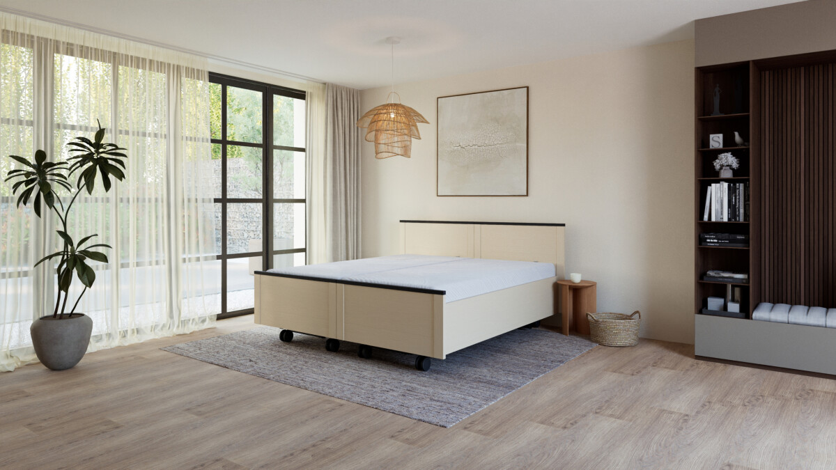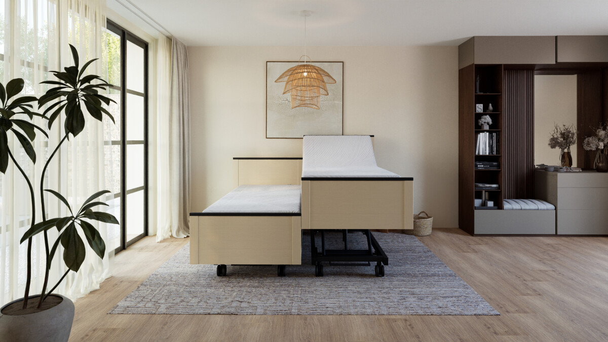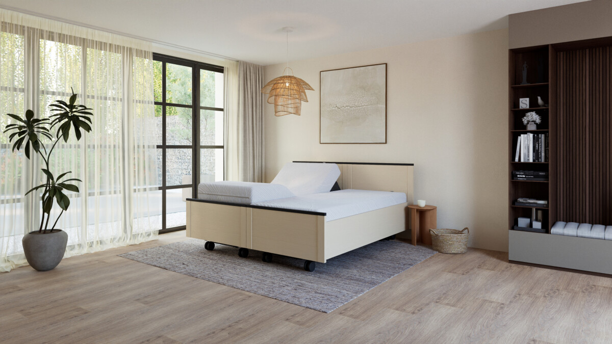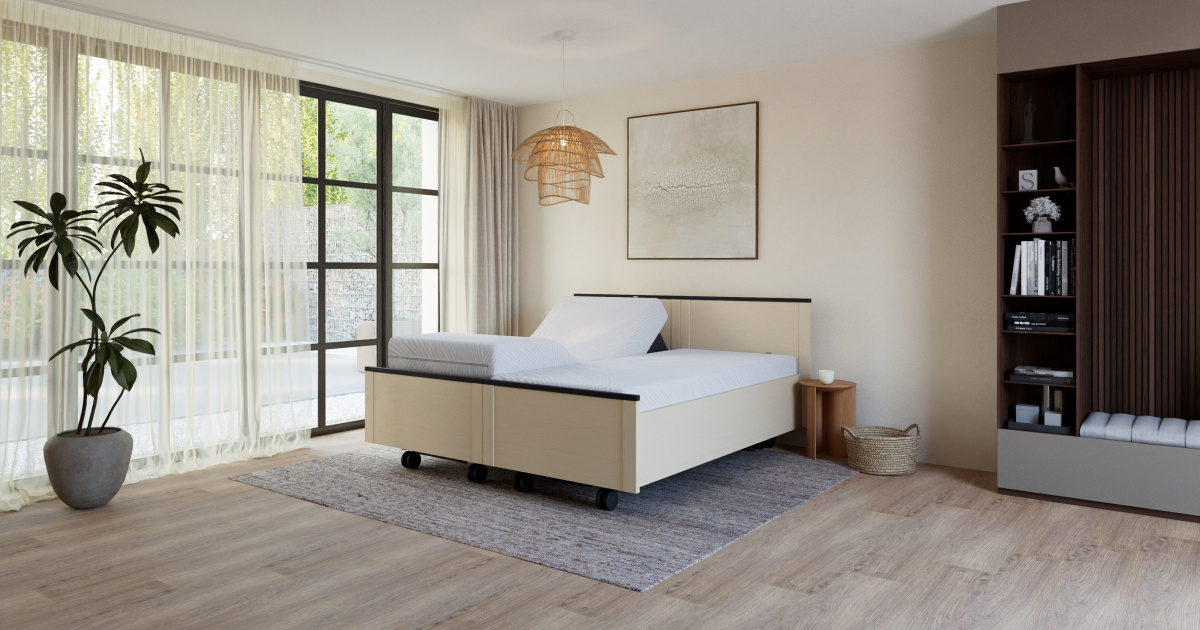 Deelbaar seniorenbed met verrijdbaar frame en praktisch comfort
