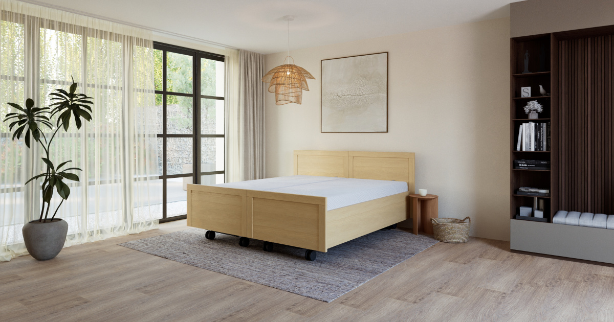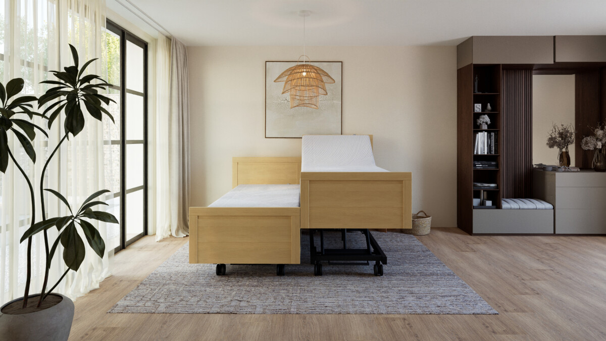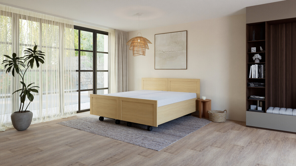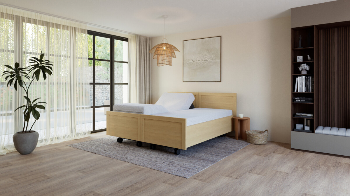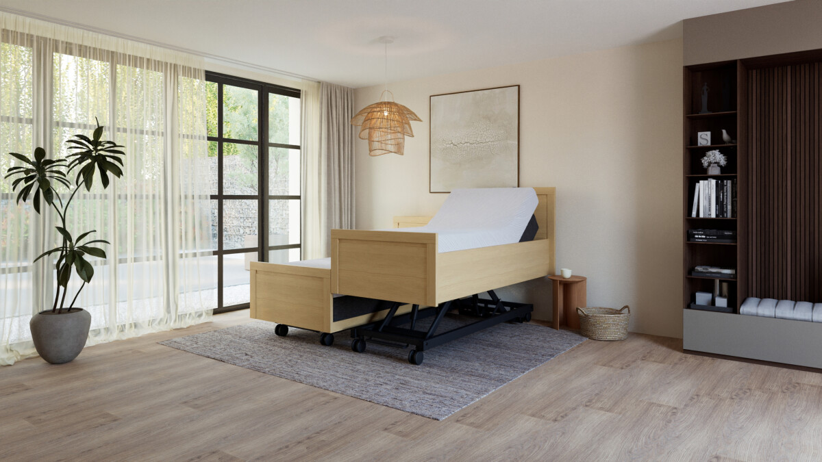 Voor extra steun en flexibiliteit kan het Lenn-model worden uitgebreid met een elektrische hoog-laag lift. Deze optie is ideaal wanneer verzorging aan bed nodig is of wanneer je eenvoudig van positie wilt wisselen.